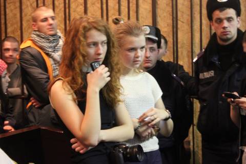Вона оголошує про продовження терміну тримання під вартою на 60 діб, та ше до кінця не заслухавши ухвалу активісти ставлять одну лавку на іншу. Маленька барикада заблоковує вихід. Суддя, незважаючий на колапс, всідається на крісло і незворушно дивиться на шоу. Силовиків ніхто не провокує, їм ніхто нічого не наказує, вони й далі розділяють зал.