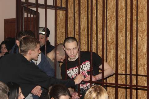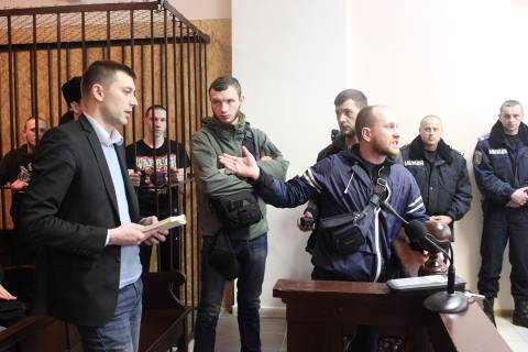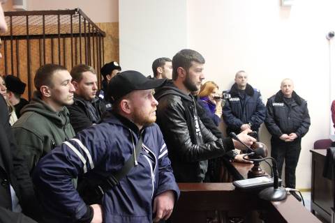 Тому призначене на сьогодні судове засідання ще до початку віщувало несподіванки. Кілька десятків правих активістів прийшли в Галицький районний суд підтримати підсудних Марзака, Жикола, Мазорчука, Мірошника вони ж Мішаня, Несмачний, Фашик та Морячок.
