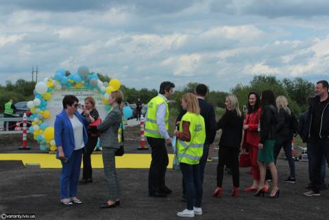 Урочиста мить офіційного відкриття відремонтованої автомобільної дороги Т-14-16 Львів – Пустомити – Меденичі.