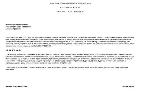 Про це йдеться у розпорядженні начальника Львівської ОВА Максима Козицького від 6 червня 2025 року.