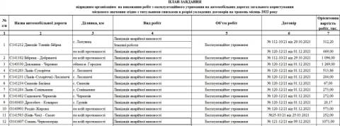 - затвердити План-завдання підрядним організаціям на виконання робіт з експлуатаційного утримання на автомобільних дорогах загального користування місцевого значення згідно з титульними списками в розрізі укладених договорів на травень місяць 2022 року;