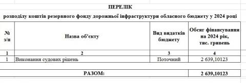 Йдеться про виділення 2 639 101,23 грн на виконання судових рішень впродовж 2024 року.