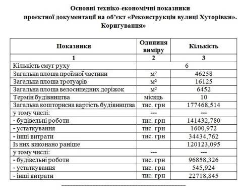 Згідно із проєктом, загальна вартість реконструкції цієї вулиці складає 177 468 514 грн: будівельні роботи – 141 432,780 грн, устаткування – 1 600 972 грн, інші витрати – 34 434 762 грн.