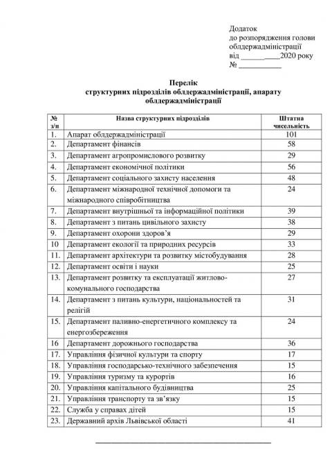 Найбільшу кількість респіраторів отримають апарат облдержадміністрації – 101 штуку, департамент фінансів – 58 штук, департамент економічної політики – 56 штук, департамент соціального захисту населення – 48, та державний архів Львівської області – 41. Натомість найменше респіраторів отримають управління господарсько-технічного забезпечення, управління ранспорту та зв’язку та служба у справах дітей – лише по 15 штук.