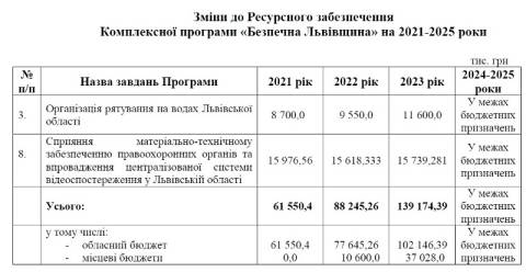 "Внести зміни до Комплексної програми "Безпечна Львівщина" на 2021- 2025 роки, затвердженої рішенням Львівської обласної ради від 16.03.2021 № 84 (зі змінами)" – йдеться у розпорядженні.