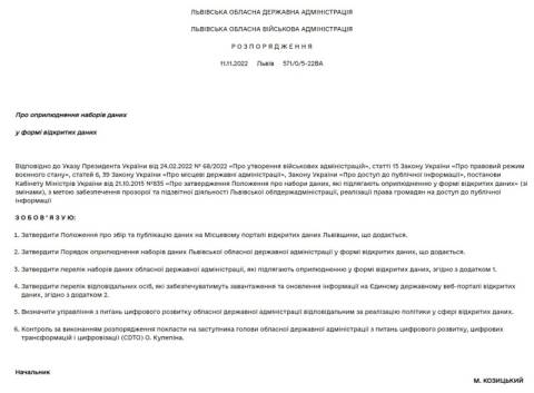Максим Козицький затвердив порядок оприлюднення даних Львівської ОВА.