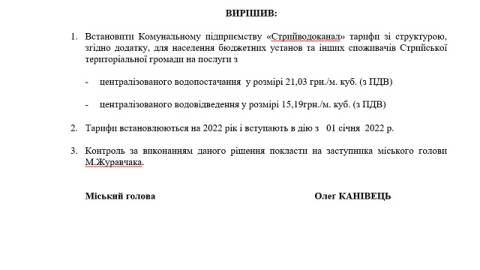 Нагадаємо, до кінця 2021 року діють тарифи КП "Стрийводоканал": на централізоване водопостачання — 19.55 грн за кубометр, на водовідведення — 13.07 грн за кубометр.