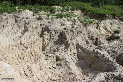 Йдемо ближче до заводу, де нещодавно викопано ями. Їх глибина – 2-2,5 м. Завдяки слідам зубців ковша впевнюємось, що копали спецтехнікою.