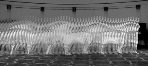 Інструментом дослідження руху в проекті Дарії Кузьмич Прийняття є водночас відеоінсталяція, текст та малюнок на стіні.