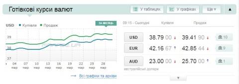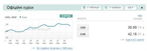 Сьогодні, 1 квітня, середній готівковий курс долара становить 39,41 гривні у продажу та 38,79 гривні в купівлі, а євро – 42,85 гривні у продажу та 42,16 гривні у купівлі.