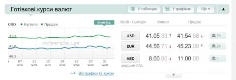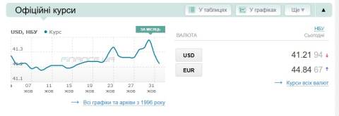 Сьогодні, 1 листопада, середній готівковий курс долара становить 41,54 гривні у продажу та 41,05 гривні в купівлі, а євро – 45,23 гривні у продажу та 44,56 гривні у купівлі.