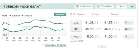 Сьогодні, 1 жовтня, середній готівковий курс долара становить 41,55 гривні у продажу та 41,08 гривні в купівлі, а євро – 46,49 гривні у продажу та 45,88 гривні у купівлі.