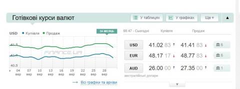 Сьогодні, 1 жовтня, середній готівковий курс долара становить 41,41 гривні у продажу та 41,02 гривні в купівлі, а євро – 48,77 гривні у продажу та 48,17 гривні у купівлі.