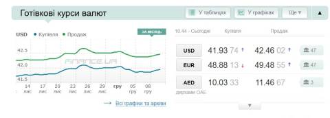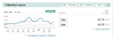 Сьогодні, 10 грудня, середній готівковий курс долара становить 42,46 гривні у продажу та 41,93 гривні в купівлі, а євро – 49,48 гривні у продажу та 48,88 гривні у купівлі.