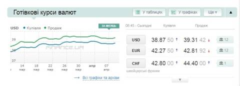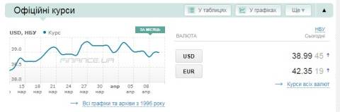 Сьогодні, 10 квітня, середній готівковий курс долара становить 39,31 гривні у продажу та 38,87 гривні в купівлі, а євро – 42,81 гривні у продажу та 42,27 гривні у купівлі.