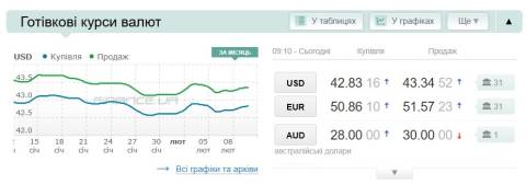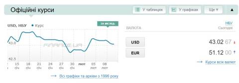 Сьогодні, 10 лютого, середній готівковий курс долара становить 43,34 гривні у продажу та 42,83 гривні в купівлі, а євро – 51,57 гривні у продажу та 50,86 гривні у купівлі.