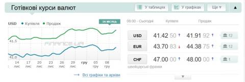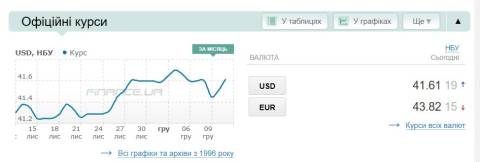 Сьогодні, 11 грудня, середній готівковий курс долара становить 41,19 гривні у продажу та 41,42 гривні в купівлі, а євро – 44,38 гривні у продажу та 43,70 гривні у купівлі.