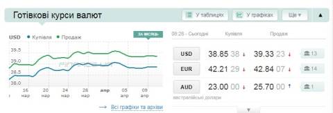 Сьогодні, 11 квітня, середній готівковий курс долара становить 39,33 гривні у продажу та 38,85 гривні в купівлі, а євро – 42,84 гривні у продажу та 42,21 гривні у купівлі.