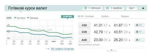 Сьогодні, 11 лютого, середній готівковий курс долара становить 41,87 гривні у продажу та 41,31 гривні в купівлі, а євро – 43,51 гривні у продажу та 42,79 гривні у купівлі.