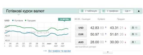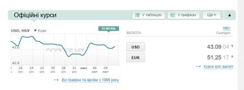 Сьогодні, 11 лютого, середній готівковий курс долара становить 43,31 гривні у продажу та 42,83 гривні в купівлі, а євро – 51,61 гривні у продажу та 50,97 гривні у купівлі.