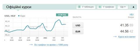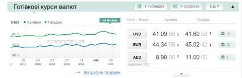 Сьогодні, 11 листопада, середній готівковий курс долара становить 41,60 гривні у продажу та 41,09 гривні в купівлі, а євро – 45,02 гривні у продажу та 44,34 гривні у купівлі.
