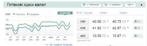 Сьогодні, 11 січня, середній готівковий курс долара становить 40,75 гривні у продажу та 40,06 гривні в купівлі, а євро – 42,97 гривні у продажу та 41,92 гривні у купівлі.