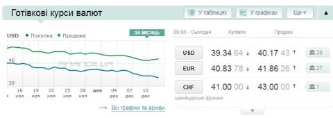 Сьогодні, 12 грудня, середній готівковий курс долара становить 40,17 гривні у продажу та 39,34 гривні в купівлі, а євро – 41,86 гривні у продажу та 40,83 гривні у купівлі.