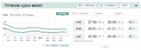 Сьогодні, 12 лютого, середній готівковий курс долара становить 38,08 гривні у продажу та 37,59 гривні в купівлі, а євро – 41,31 гривні у продажу та 40,61 гривні у купівлі.