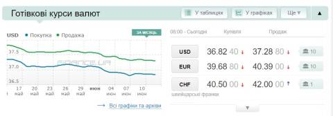 Сьогодні, 13 червня, середній готівковий курс долара становить 37,28 гривні у продажу та 36,82 гривні в купівлі, а євро – 40,39 гривні у продажу та 39,68 гривні у купівлі.