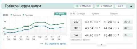 Сьогодні, 12 червня, середній готівковий курс долара становить 40,89 гривні у продажу та 40,40 гривні в купівлі, а євро – 44,34 гривні у продажу та 43,64 гривні у купівлі.