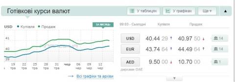 Сьогодні, 14 червня, середній готівковий курс долара становить 40,97 гривні у продажу та 40,44 гривні в купівлі, а євро – 44,49 гривні у продажу та 43,74 гривні у купівлі.