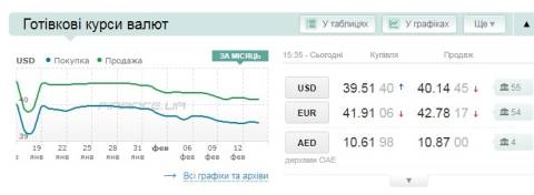Сьогодні, 14 лютого, середній готівковий курс долара становить 40,14 гривні у продажу та 39,51 гривні в купівлі, а євро – 42,78 гривні у продажу та 41,91 гривні у купівлі.
