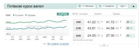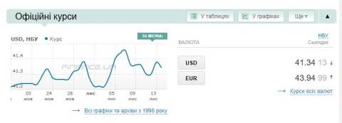 Сьогодні, 14 листопада, середній готівковий курс долара становить 41,72 гривні у продажу та 41,22 гривні в купівлі, а євро – 44,58 гривні у продажу та 43,81 гривні у купівлі.