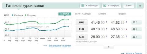 Сьогодні, 14 жовтня, середній готівковий курс долара становить 41,82 гривні у продажу та 41,46 гривні в купівлі, а євро – 48,59 гривні у продажу та 48,13 гривні у купівлі.