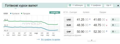 Сьогодні, 14 серпня, середній готівковий курс долара становить 41,65 гривні у продажу та 41,25 гривні в купівлі, а євро – 48,75 гривні у продажу та 48,35 гривні у купівлі.