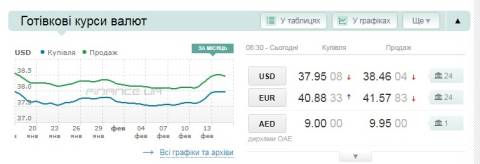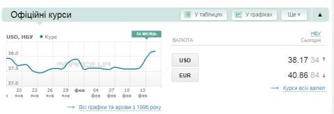 Сьогодні, 15 лютого, середній готівковий курс долара становить 38,46 гривні у продажу та 37,95 гривні в купівлі, а євро – 41,57 гривні у продажу та 40,88 гривні у купівлі.