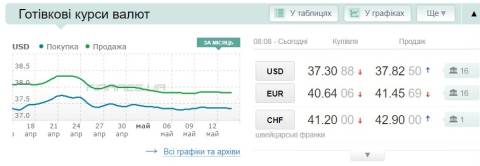 Сьогодні, 15 травня, середній готівковий курс долара становить 37,82 гривні у продажу та 37,30 гривні в купівлі, а євро – 41,45 гривні у продажу та 40,64 гривні у купівлі.