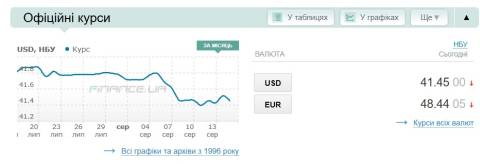 - долар – 41,45 гривні;