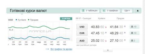 Сьогодні, 16 червня, середній готівковий курс долара становить 41,64 гривні у продажу та 40,83 гривні в купівлі, а євро – 48,29 гривні у продажу та 47,45 гривні у купівлі.