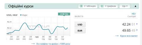 Сьогодні, 16 грудня, середній готівковий курс долара становить 42,45 гривні у продажу та 41,95 гривні в купівлі, а євро – 49,88 гривні у продажу та 49,25 гривні у купівлі.