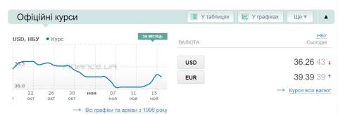 Сьогодні, 16 листопада, середній готівковий курс долара становить 36,31 гривні у продажу та 35,79 гривні в купівлі, а євро – 39,24 гривні у продажу та 38,49 гривні у купівлі.