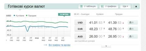 Сьогодні, 16 вересня, середній готівковий курс долара становить 41,39 гривні у продажу та 41,01 гривні в купівлі, а євро – 48,76 гривні у продажу та 48,23 гривні у купівлі.