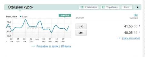 - долар – 41,53 гривні;