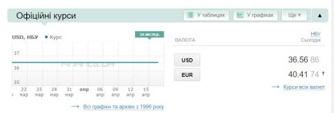 Сьогодні, 17 квітня, середній готівковий курс долара становить 37,96 гривні у продажу та 37,26 гривні в купівлі, а євро – 41,51 гривні у продажу та 40,74 гривні у купівлі.