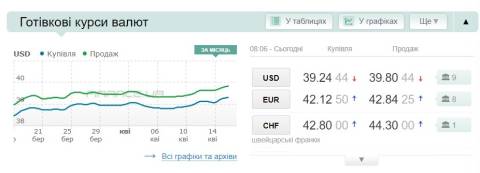 Сьогодні, 17 квітня, середній готівковий курс долара становить 39,80 гривні у продажу та 39,24 гривні в купівлі, а євро – 42,84 гривні у продажу та 42,12 гривні у купівлі.