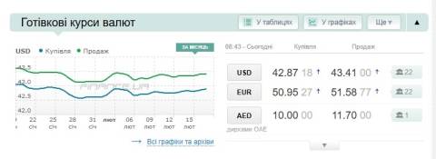 Сьогодні, 17 лютого, середній готівковий курс долара становить 43,41 гривні у продажу та 42,87 гривні в купівлі, а євро – 51,58 гривні у продажу та 50,95 гривні у купівлі.
