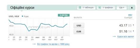 - долар – 43,17 гривні;