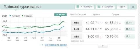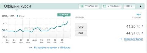 Сьогодні, 17 липня, середній готівковий курс долара становить 41,55 гривні у продажу та 41,02 гривні в купівлі, а євро – 45,38 гривні у продажу та 44,71 гривні у купівлі.