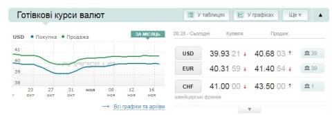 Сьогодні, 17 листопада, середній готівковий курс долара становить 40,68 гривні у продажу та 39,93 гривні в купівлі, а євро – 41,40 гривні у продажу та 40,31 гривні у купівлі.