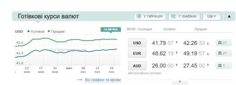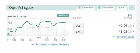 Сьогодні, 17 листопада, середній готівковий курс долара становить 42,26 гривні у продажу та 41,79 гривні в купівлі, а євро – 49,19 гривні у продажу та 48,62 гривні у купівлі.